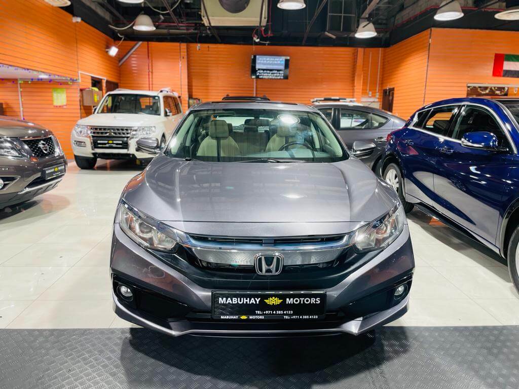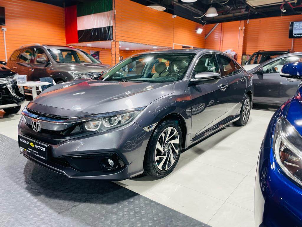 Pre-owned Honda Civic for sale in Dubai. Gray 2020 model, available at Mabuhay Motors Used Cars. This car has automatic transmission, 4 cylinders, 15″ wheels and Beige interior. 106000 km Sedan