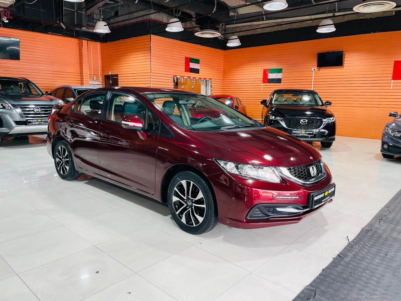 Pre-owned Honda Civic Limited for sale in Dubai. Maroon 2014 model, available at Mabuhay Motors Used Cars. This car has automatic transmission, 4 cylinders, 16 wheels and Black interior 129,000 km Sedan.