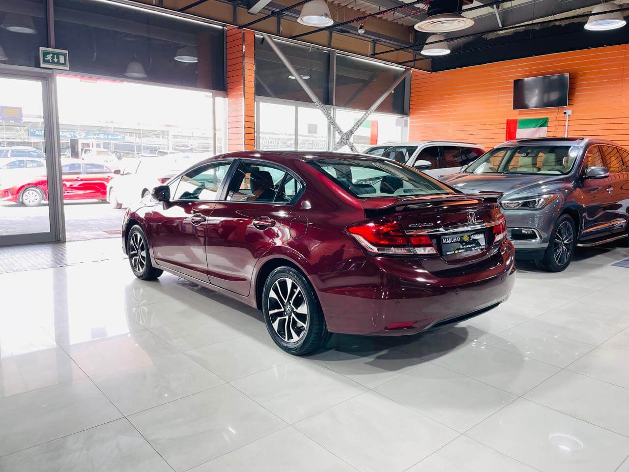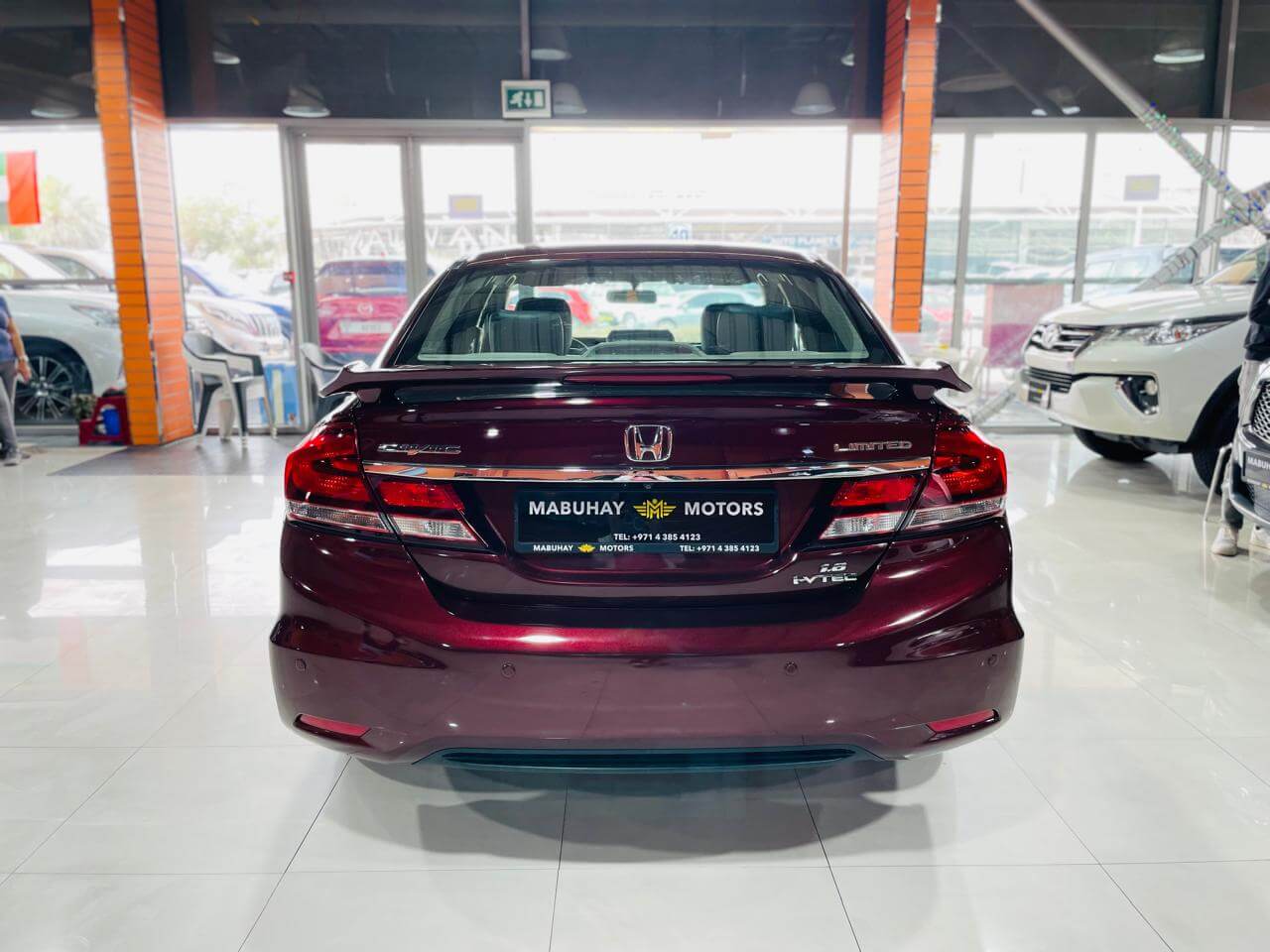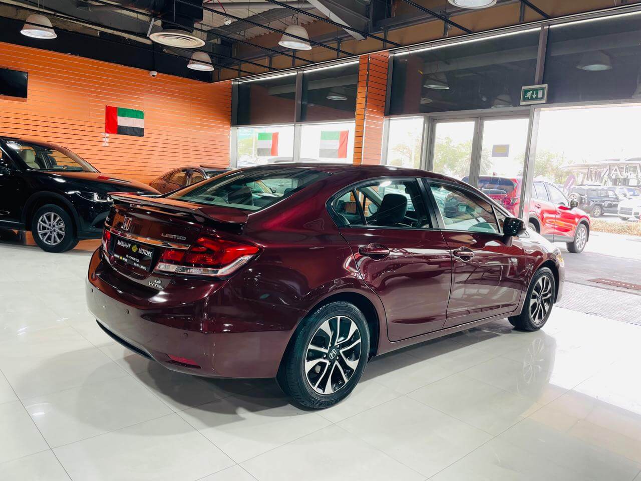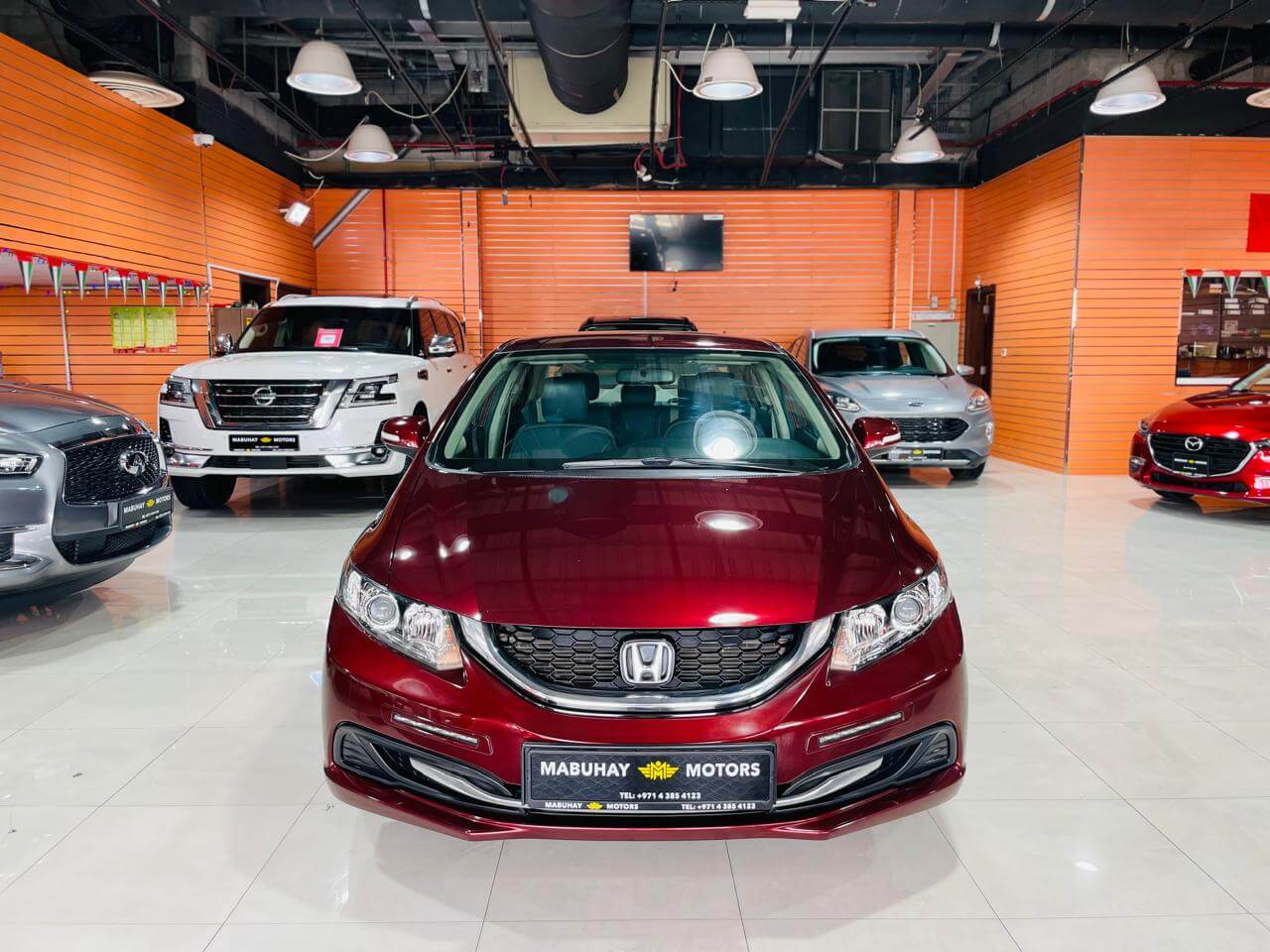 Pre-owned Honda Civic Limited for sale in Dubai. Maroon 2014 model, available at Mabuhay Motors Used Cars. This car has automatic transmission, 4 cylinders, 16 wheels and Black interior 129,000 km Sedan.