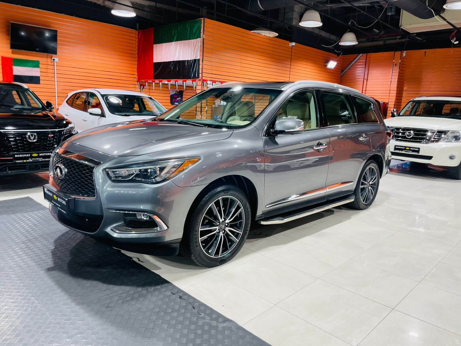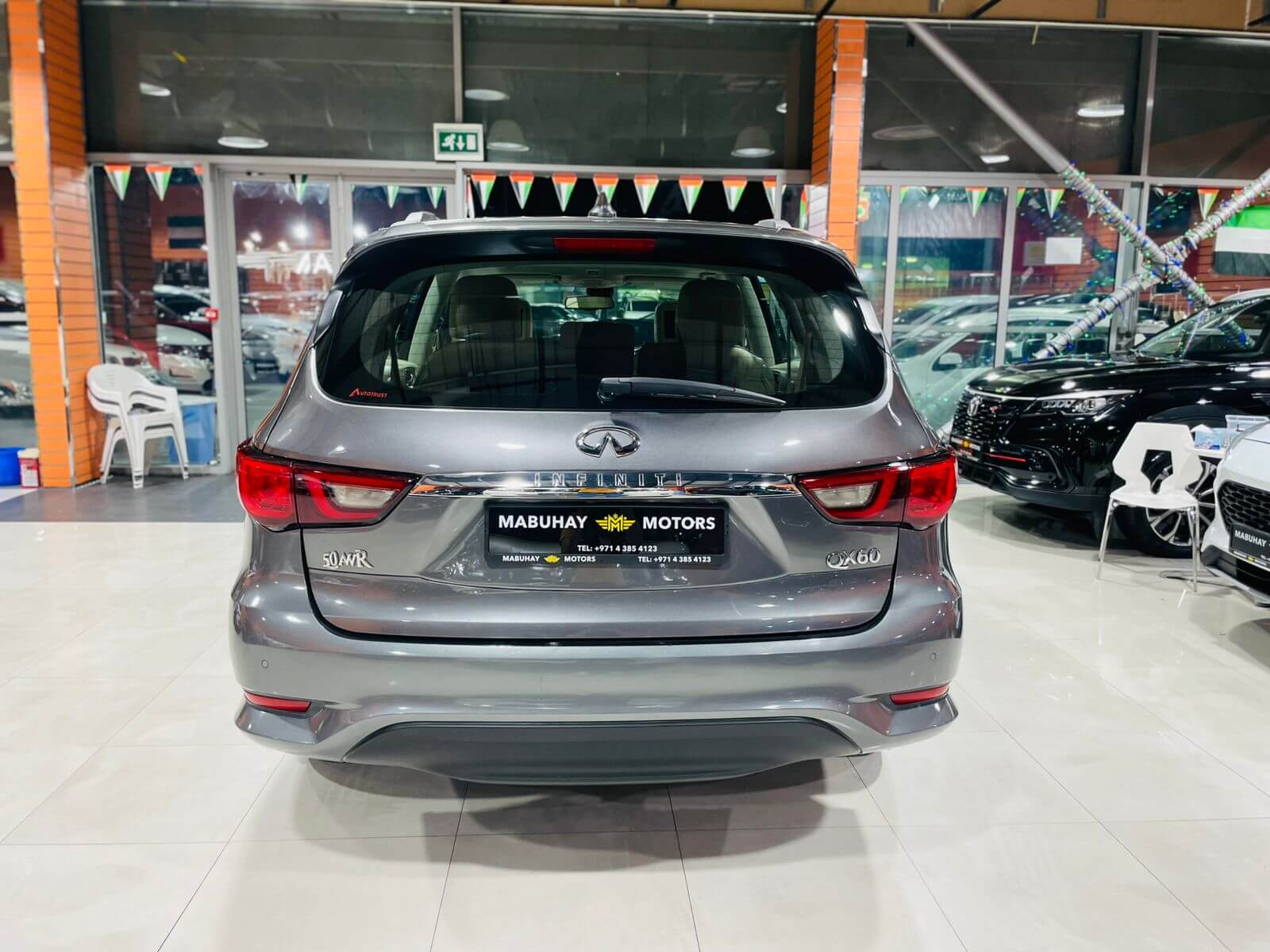 Pre-owned Infiniti Qx60 for sale in Dubai. Gray 2018model, available at Mabuhay Motors Used Cars. This car has automatic transmission, 6 cylinders, 20 wheels and Beige interior 126000 km SUV.