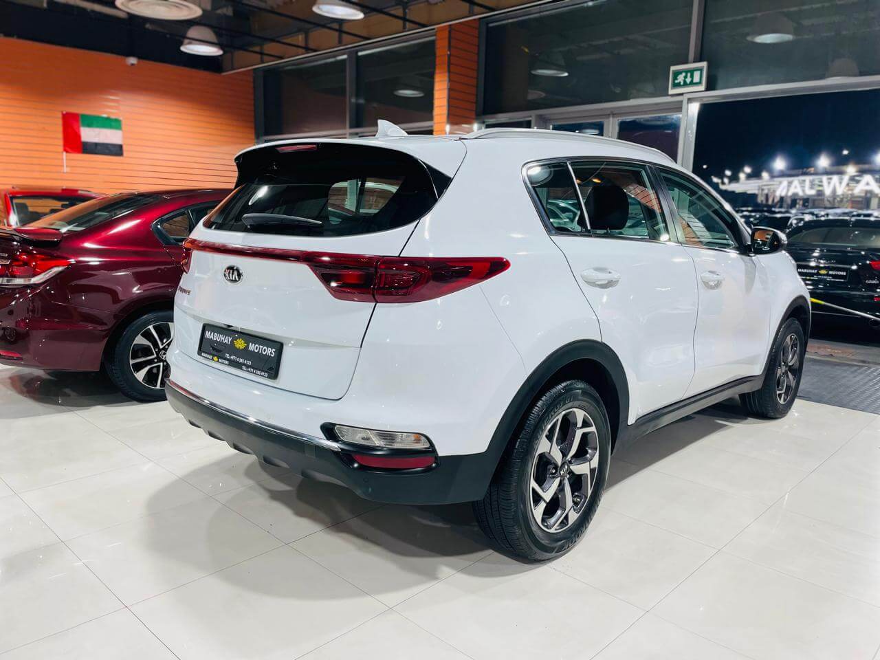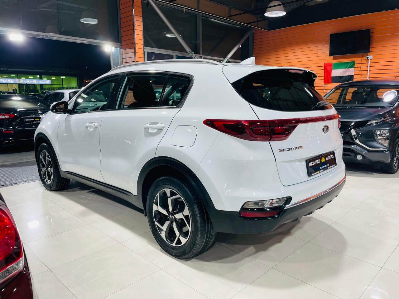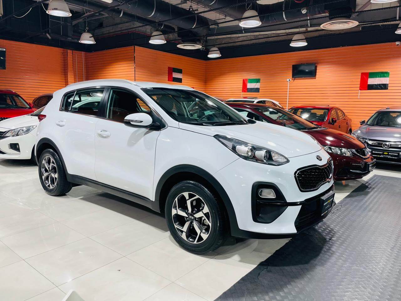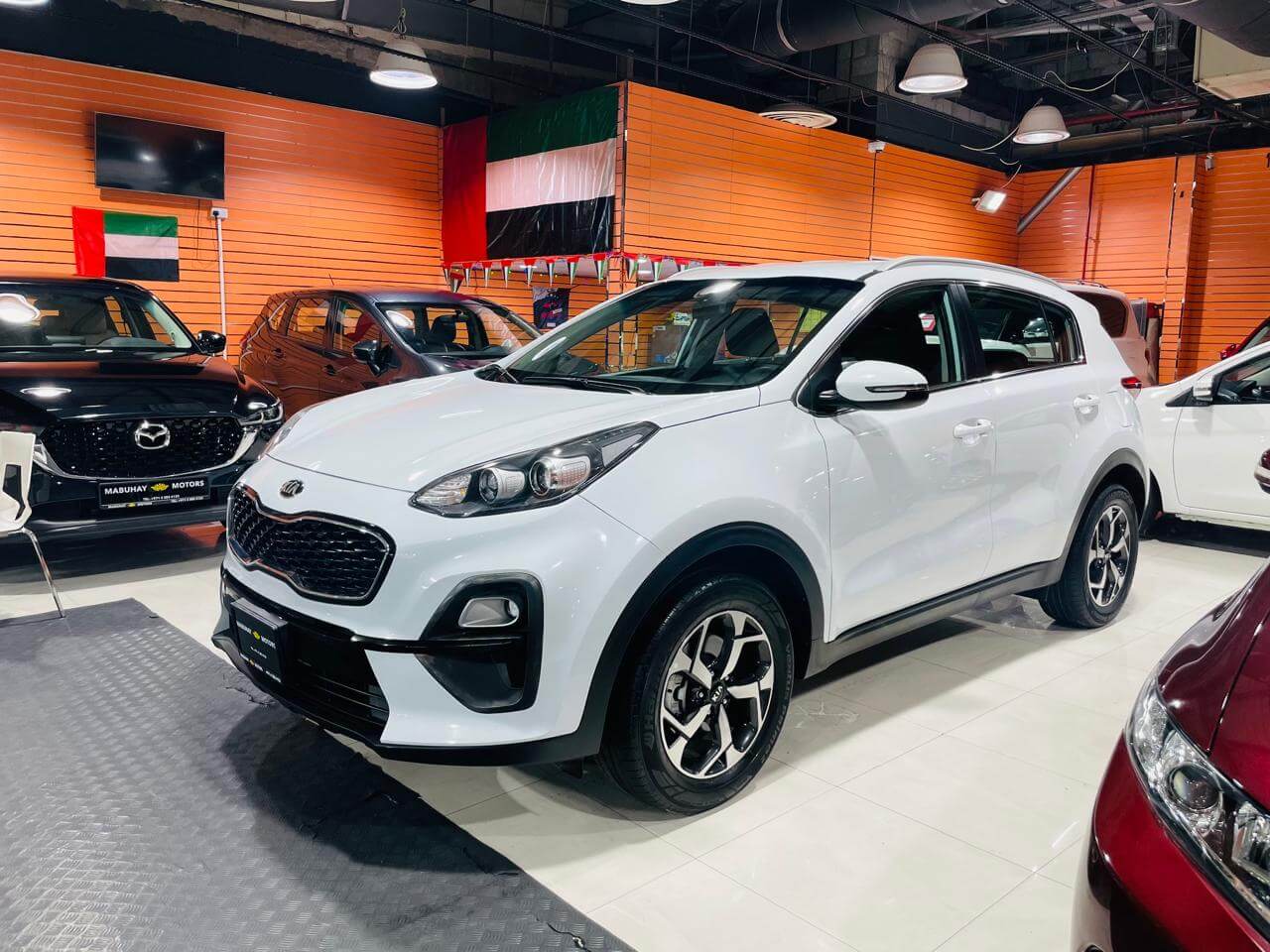 Pre-owned Kia Sportage for sale in Dubai. White 2021 model, available at Mabuhay Motors Used Cars. This car has automatic transmission, 4 cylinders, 17 wheels and Black interior 76,000 km SUV.