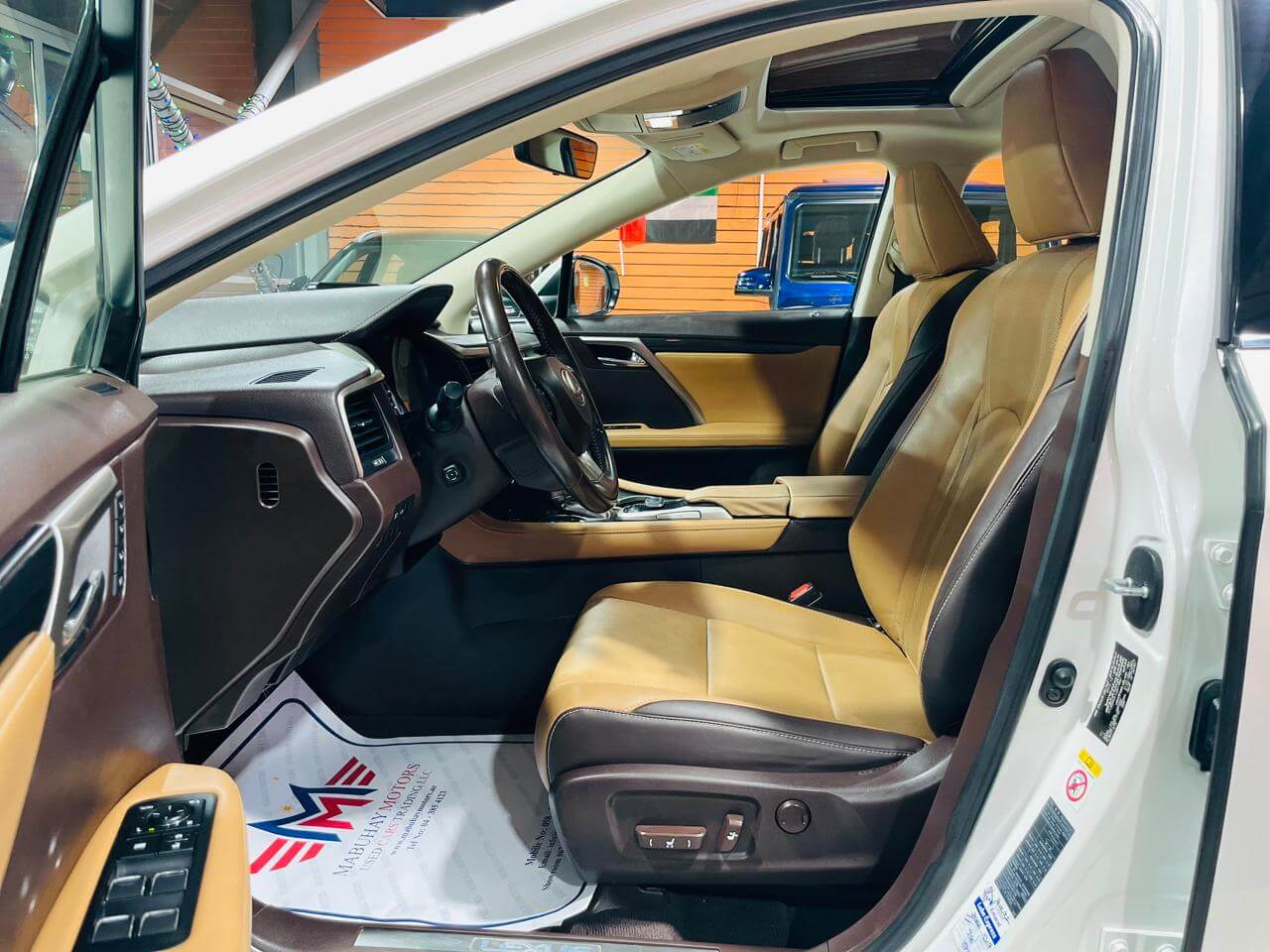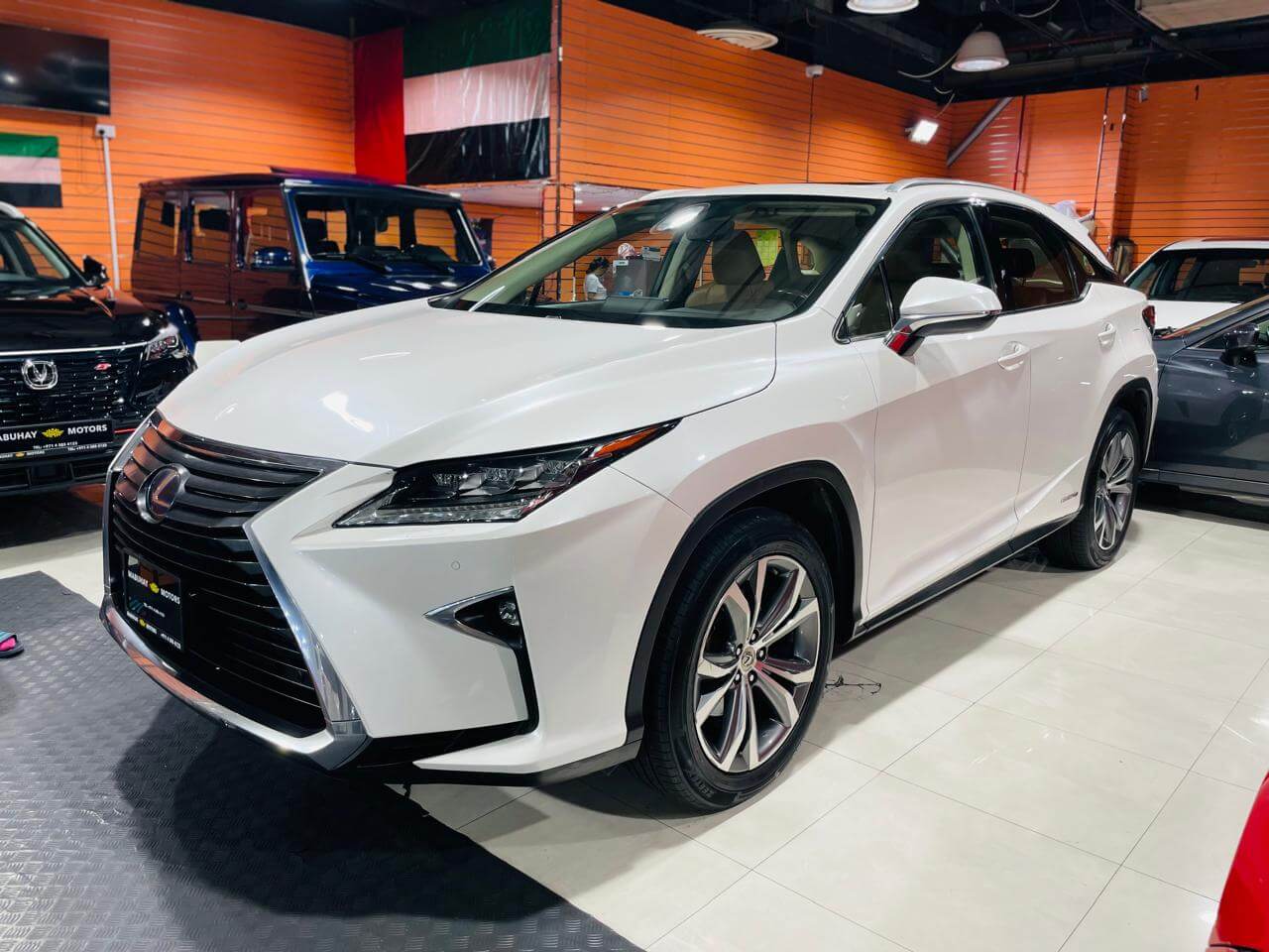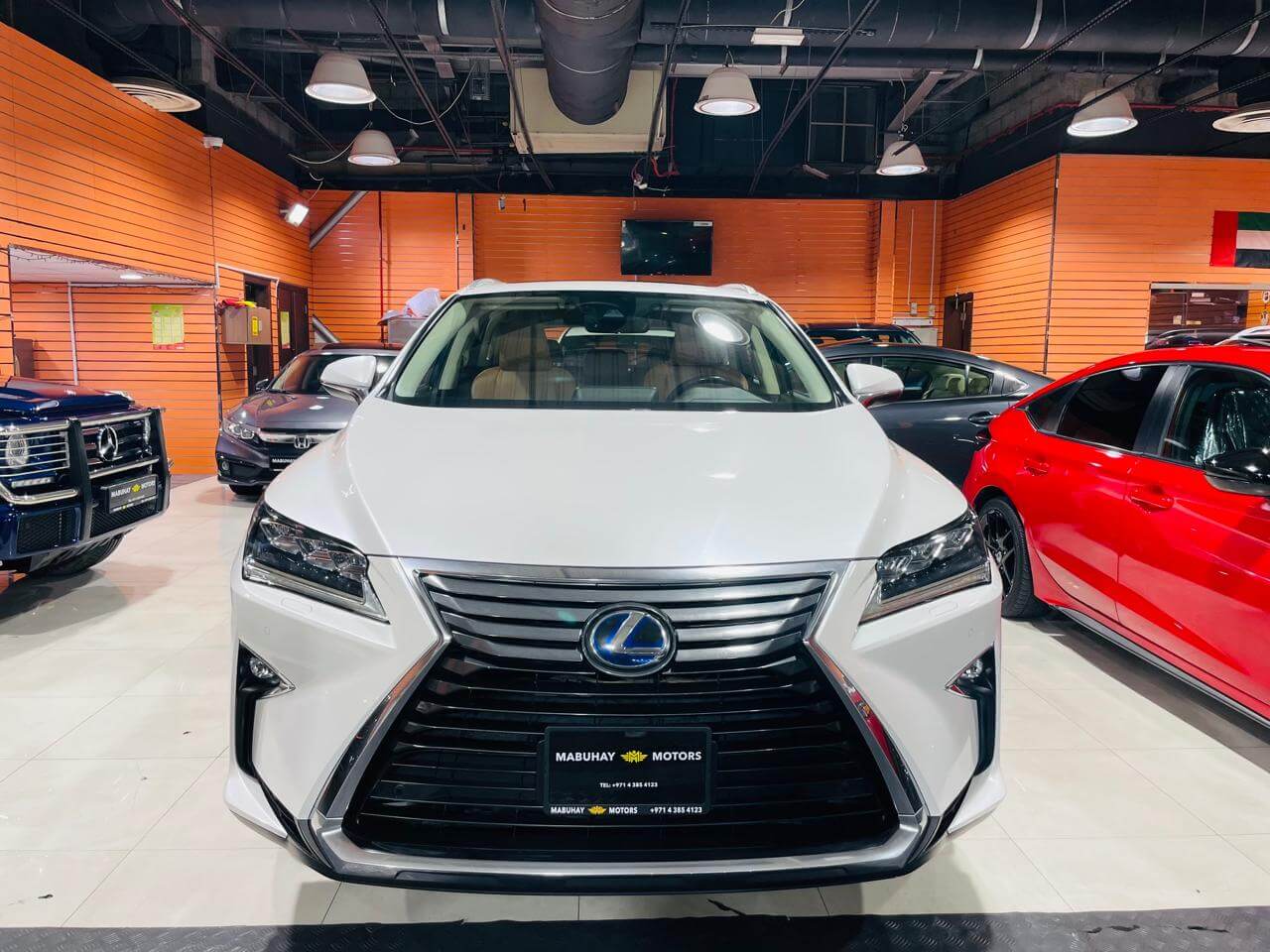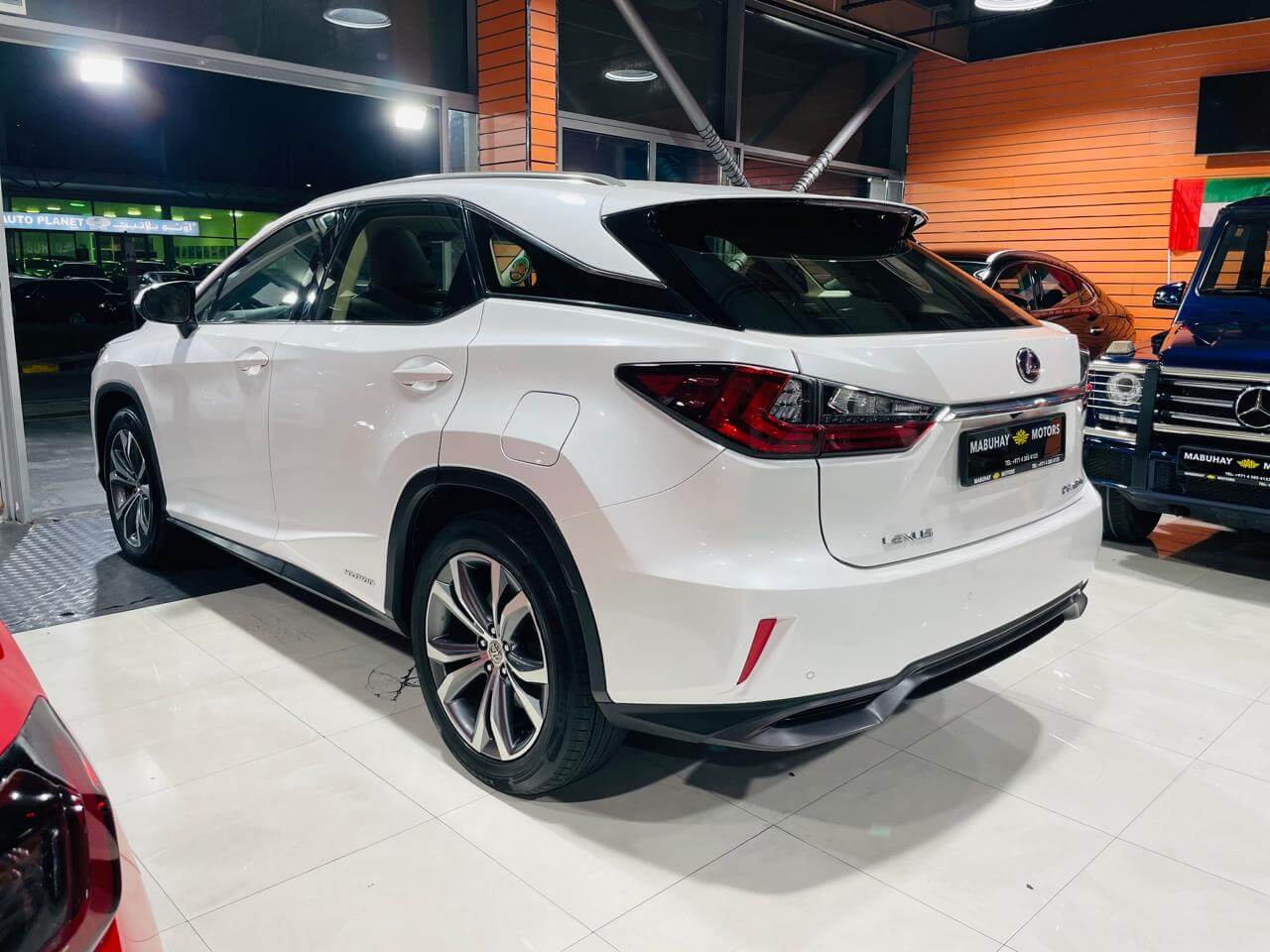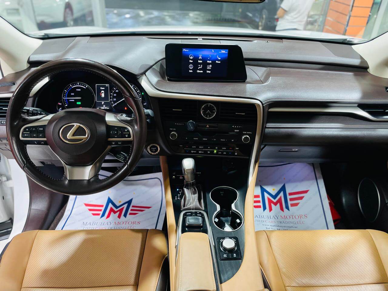 Pre-owned Lexus RX450h for sale in Dubai. White 2017 model, available at Mabuhay Motors Used Cars. This car has automatic transmission, 6 cylinders, 20 wheels and Brown interior 158000 km SUV.