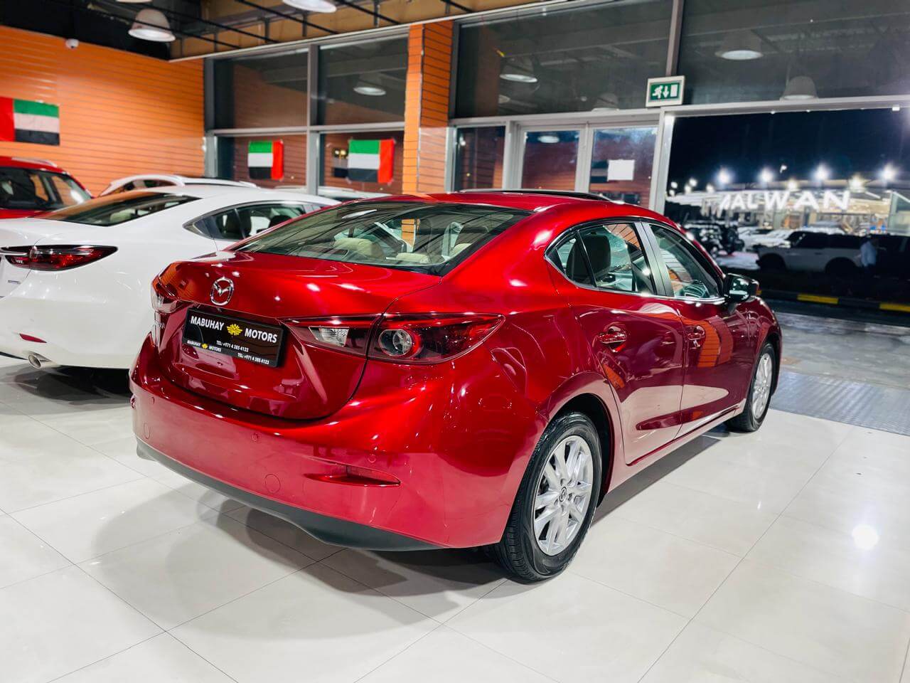Pre-owned Mazda 3 for sale in Dubai. Red 2018 model, available at Mabuhay Motors Used Cars. This car has automatic transmission, 4 cylinders, 16 wheels and Beige interior 133000 km Sedan